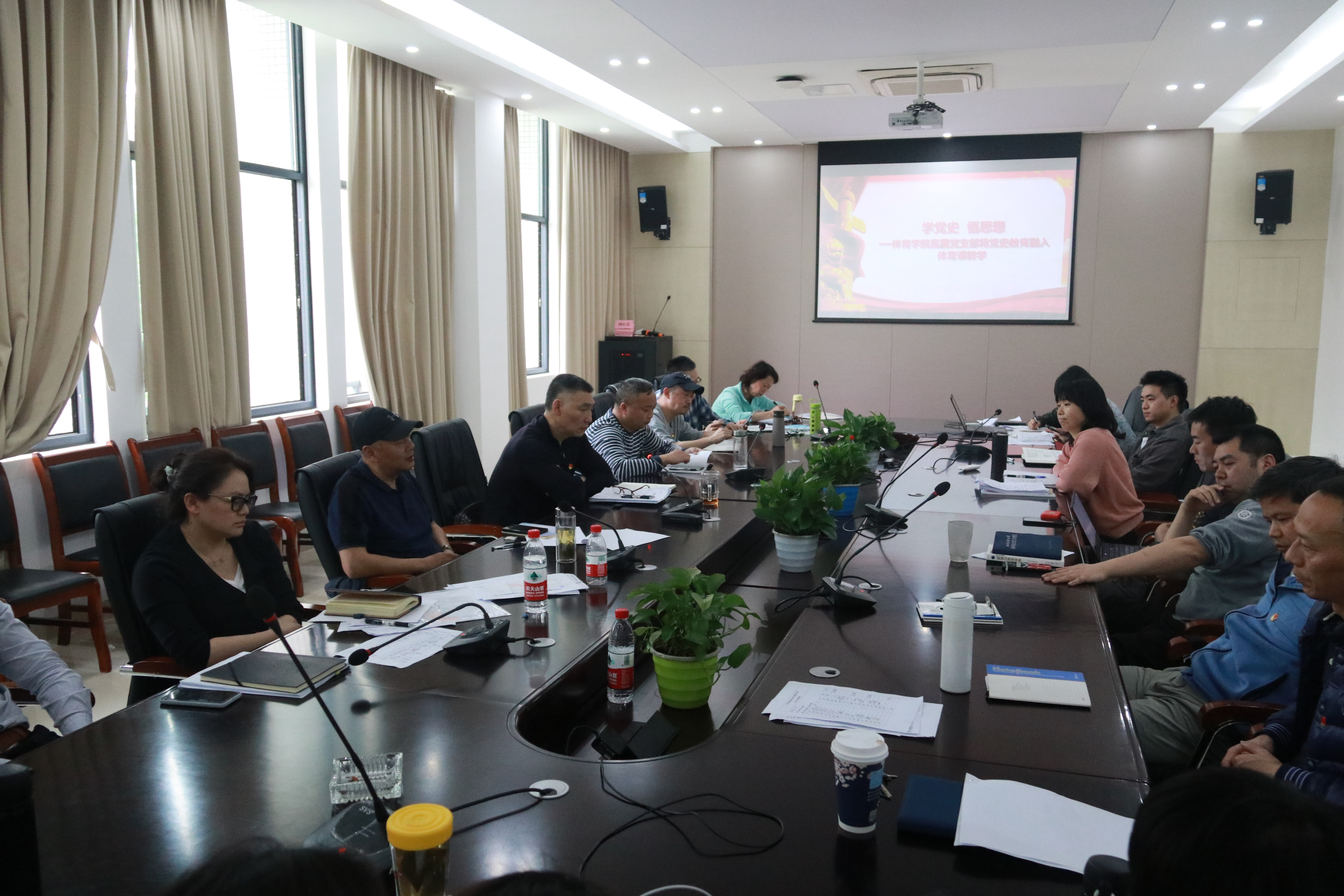 活动中,班子成员带头发言,就课程教学、运动训练、校庆健康跑等融入党史教育分享了观点看法。党员教师们纷纷踊跃发言,结合自身教学实践畅谈党史教育结合体育元素的方式方法,探讨体育课程融入思政教育的形式和途径。活动在认真、和谐的氛围中进行。