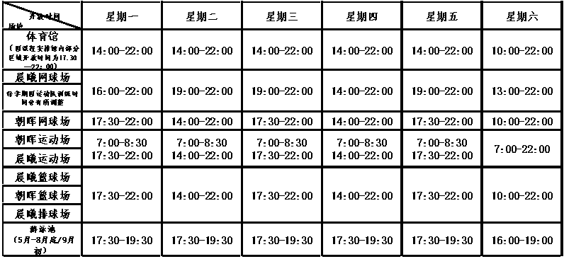 柳林校区体育场地课余开放时间