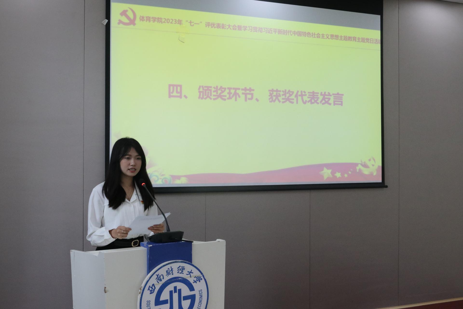 党委书记周正宏在发言中简要总结过去一年在学校党委的坚强领导下,西财体育人全面贯彻党的二十大精神、推动学院事业高质量发展取得的阶段性成果,并向奋斗在一线的师生党员致以诚挚的问候,向受到表彰的师生党员表示热烈祝贺。周正宏指出,学院党委坚持把高质量开展好主题教育作为重大政治责任,迅速行动、精心组织,坚持高标准、严要求,在深入推进理论学习、调查研究、推动发展、检视整改等方面取得了积极进展。就进一步推动主题教育走深走实,周正宏提出“四心”的工作要求,希望全体师生党员始终保持学习心、忠诚心、实干心、奋进心,在“学思想”中擦亮信仰底色,在“强党性”中擦亮忠诚底色,在“重实践”中擦亮公仆底色,在“建新功”中擦亮拼搏底色,在新征程学院体育事业高质量发展贡献力量、再立新功。