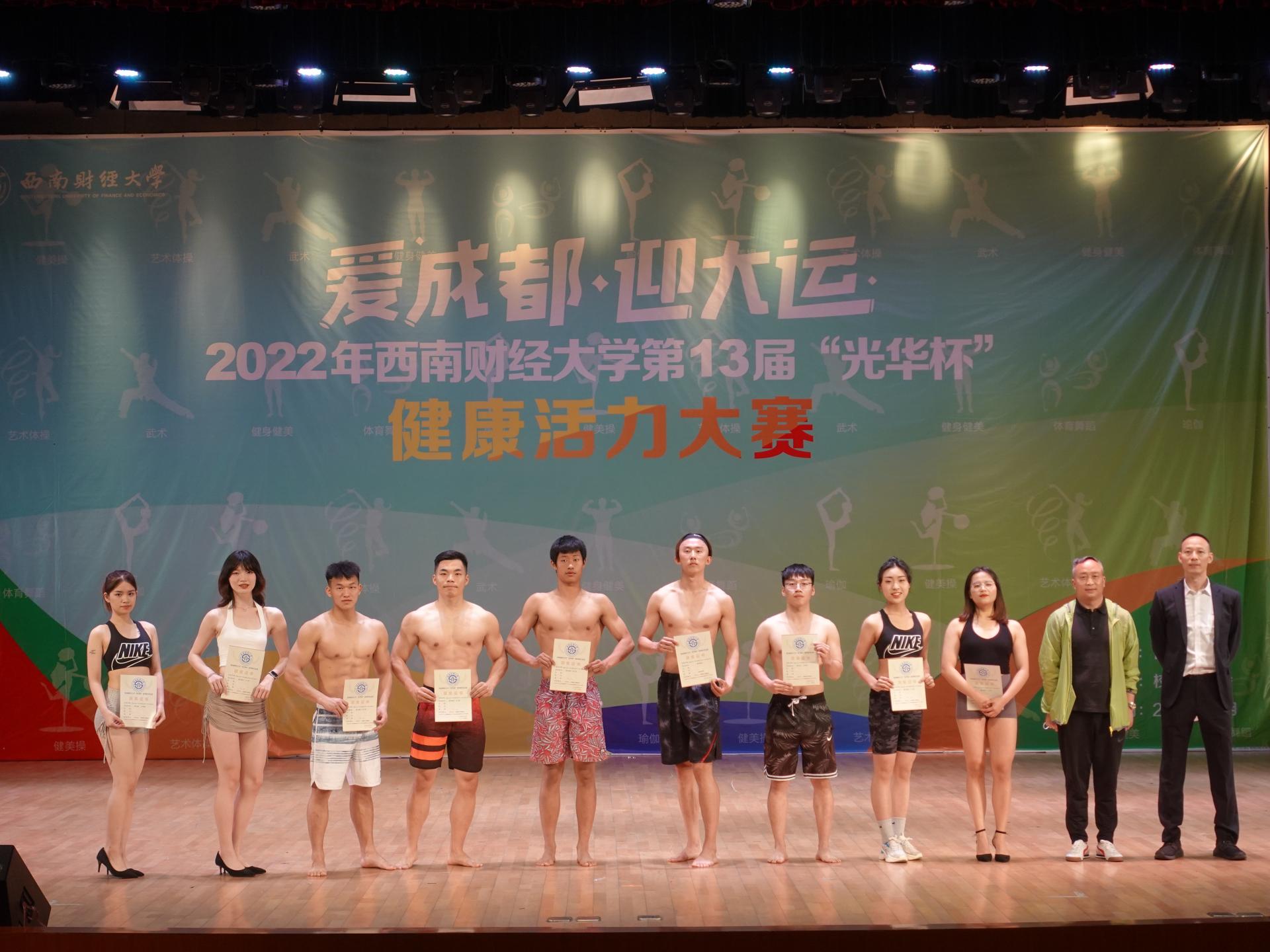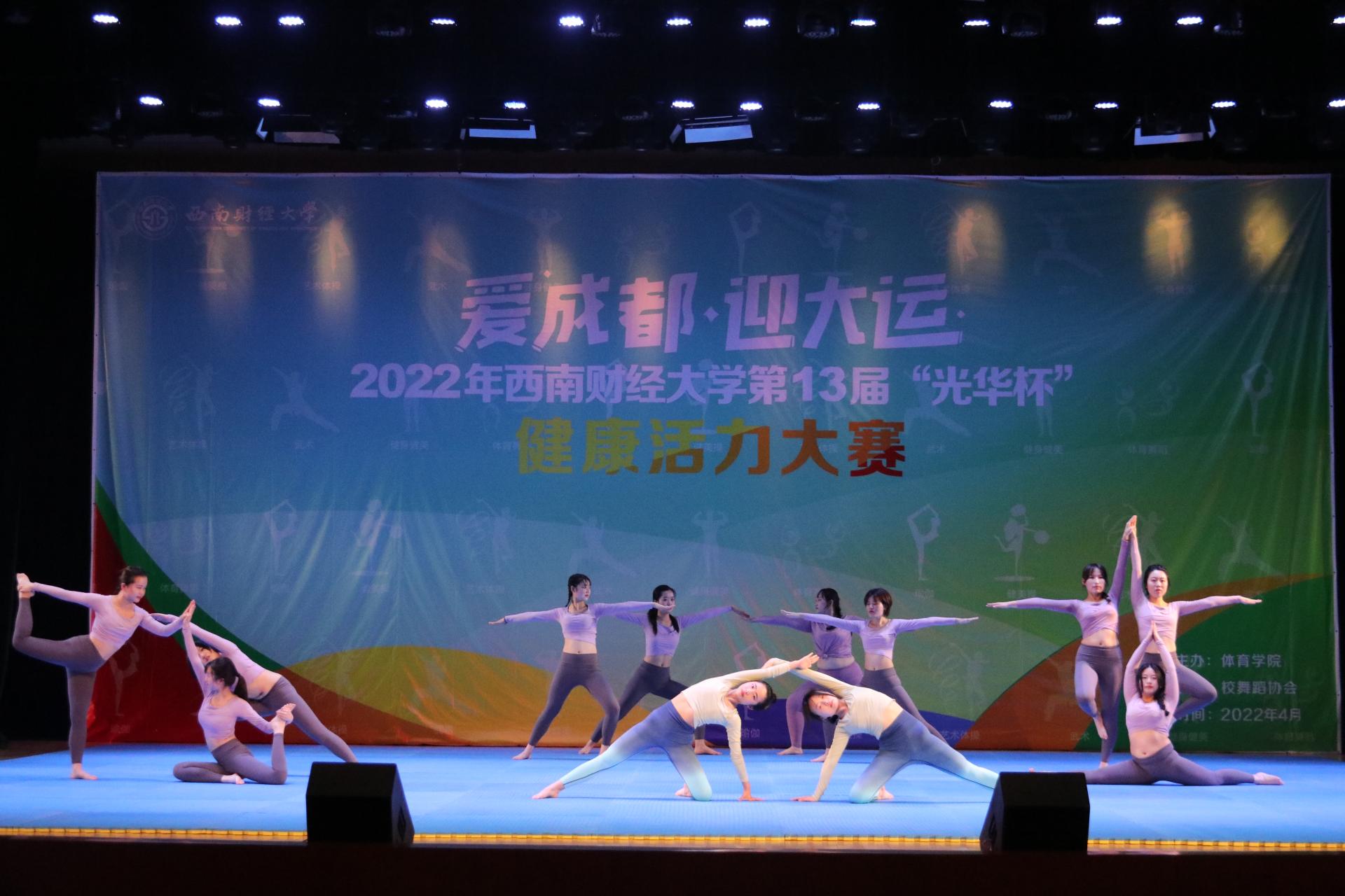 本届比赛举行了艺术体操、健美操、武术、瑜伽、体育舞蹈和健身健美6个大项的专场比赛,每个大项设置了前8名及最佳编排、最佳表演、最佳团队、最佳创意、健康活力大使等奖项。近3000余西财学子积极参赛,从编排到完成较往届比赛水平整体提升,自编内容表现形式多样化、其中不乏思政元素作品,大家用实际行动迎接第31届成都世界大学生夏季运动会。