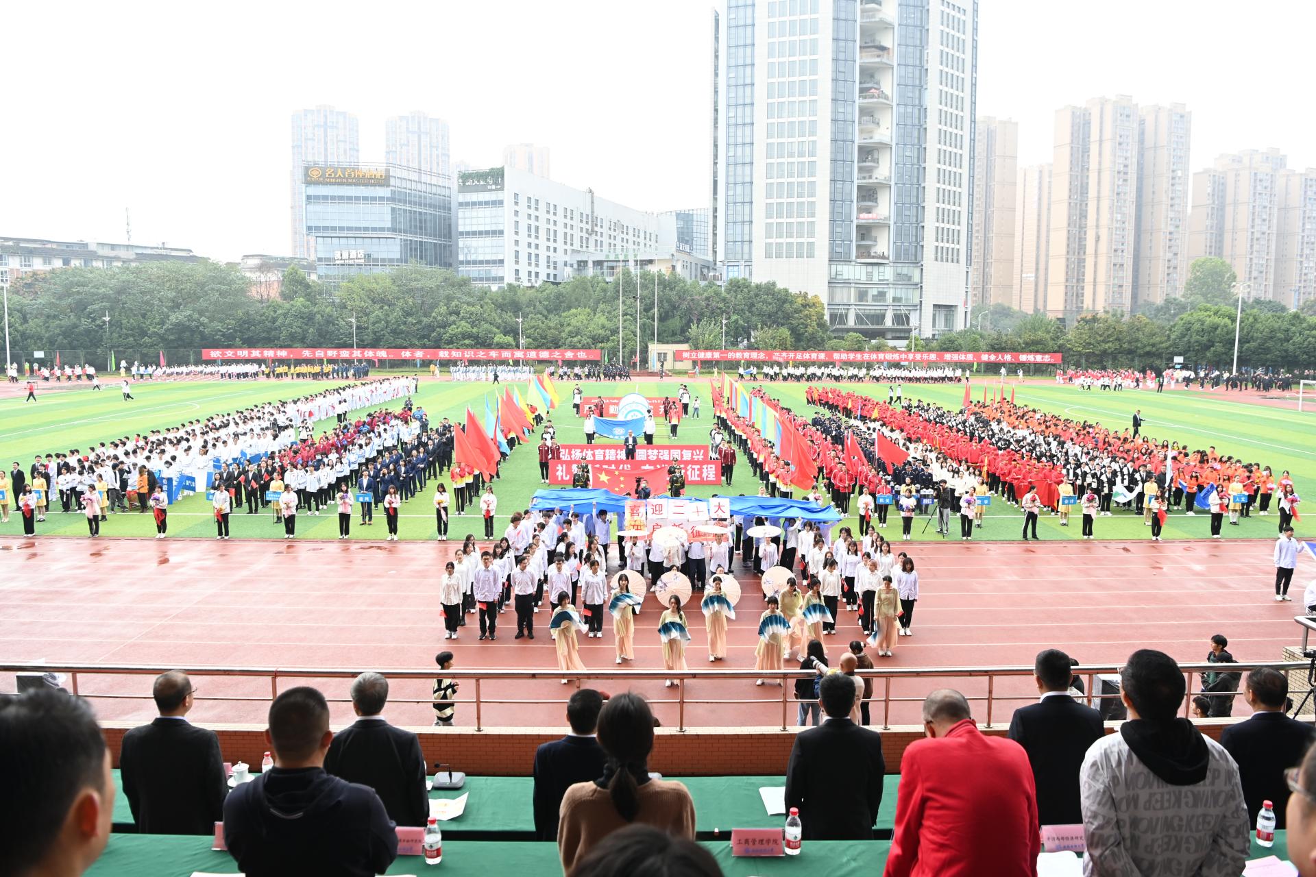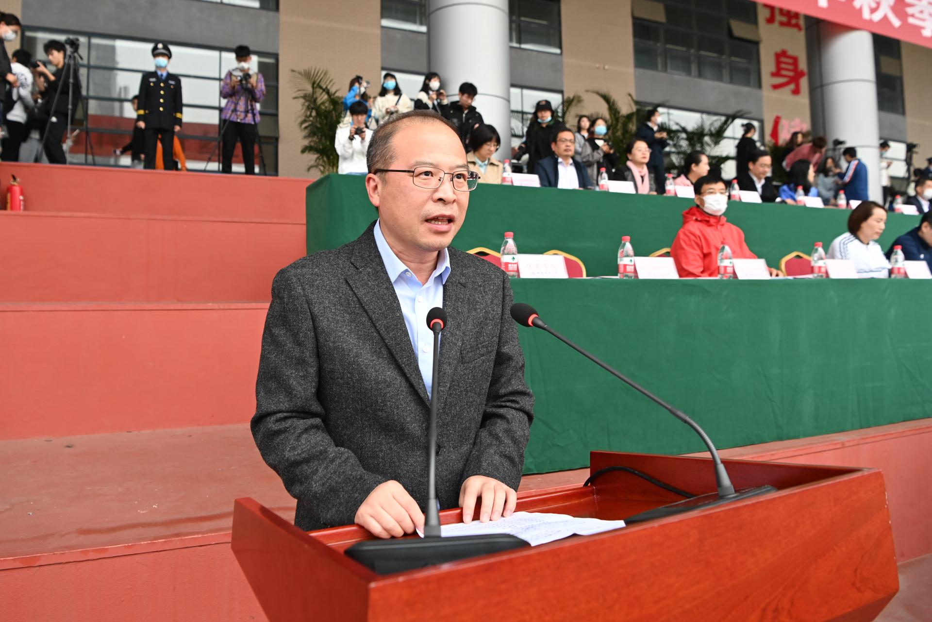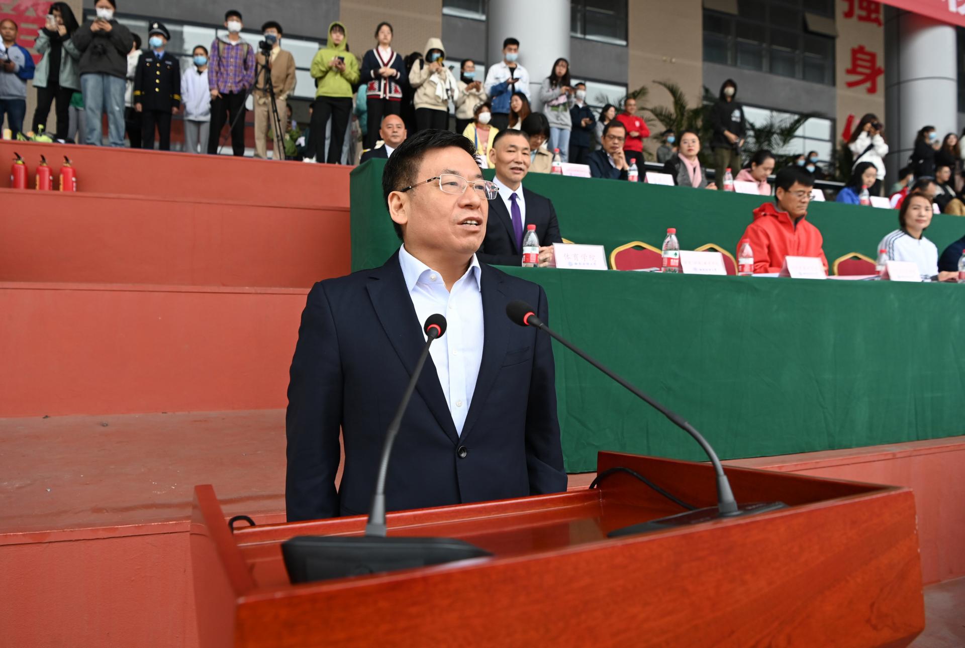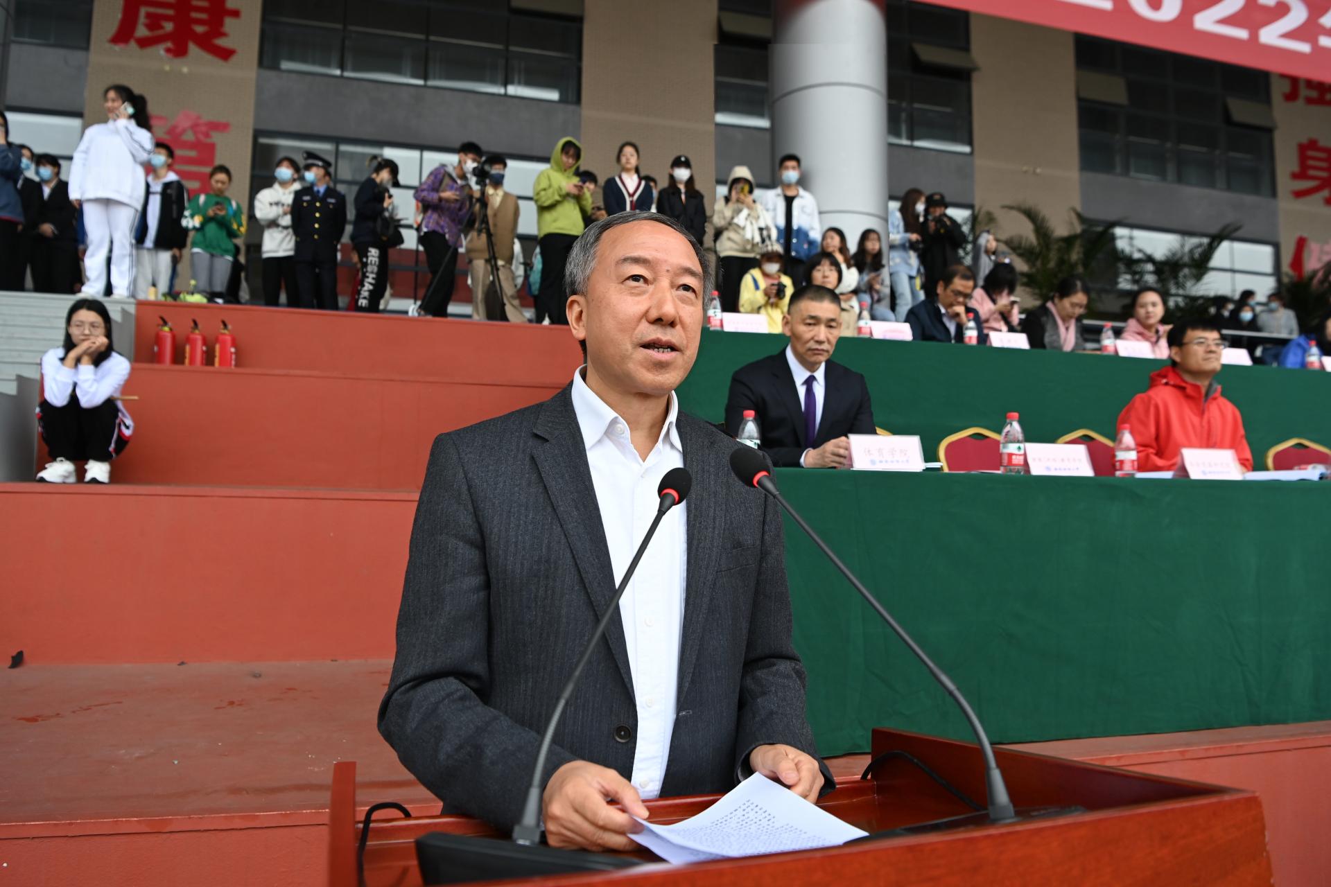在全国上下深入学习宣传贯彻党的二十大精神之际,我校2022年秋季运动会积极响应习近平总书记在党的二十大报告中发出的“加快建设体育强国”总号召,以“礼赞新时代、奋进新征程,弘扬体育精神、圆梦强国复兴”为主题,于10月27-28日在柳林校区举行。学校党委书记赵德武,党委副书记、校长卓志,党委副书记马骁,党委副书记、副校长李永强,党委常委、副校长尹庆双、史代敏、张邦富、李志生,学院(研究院)和各职能部门负责人参加了开幕式。