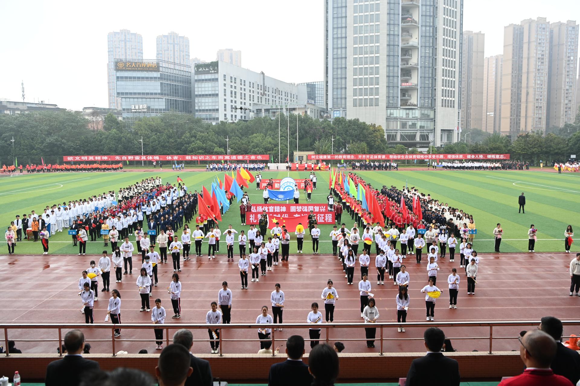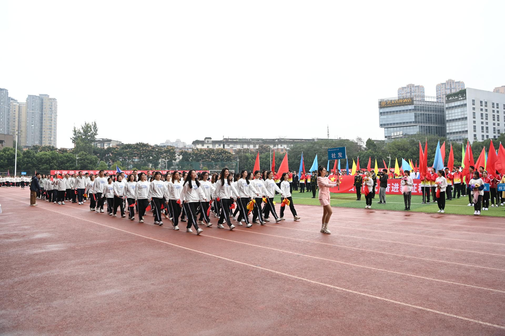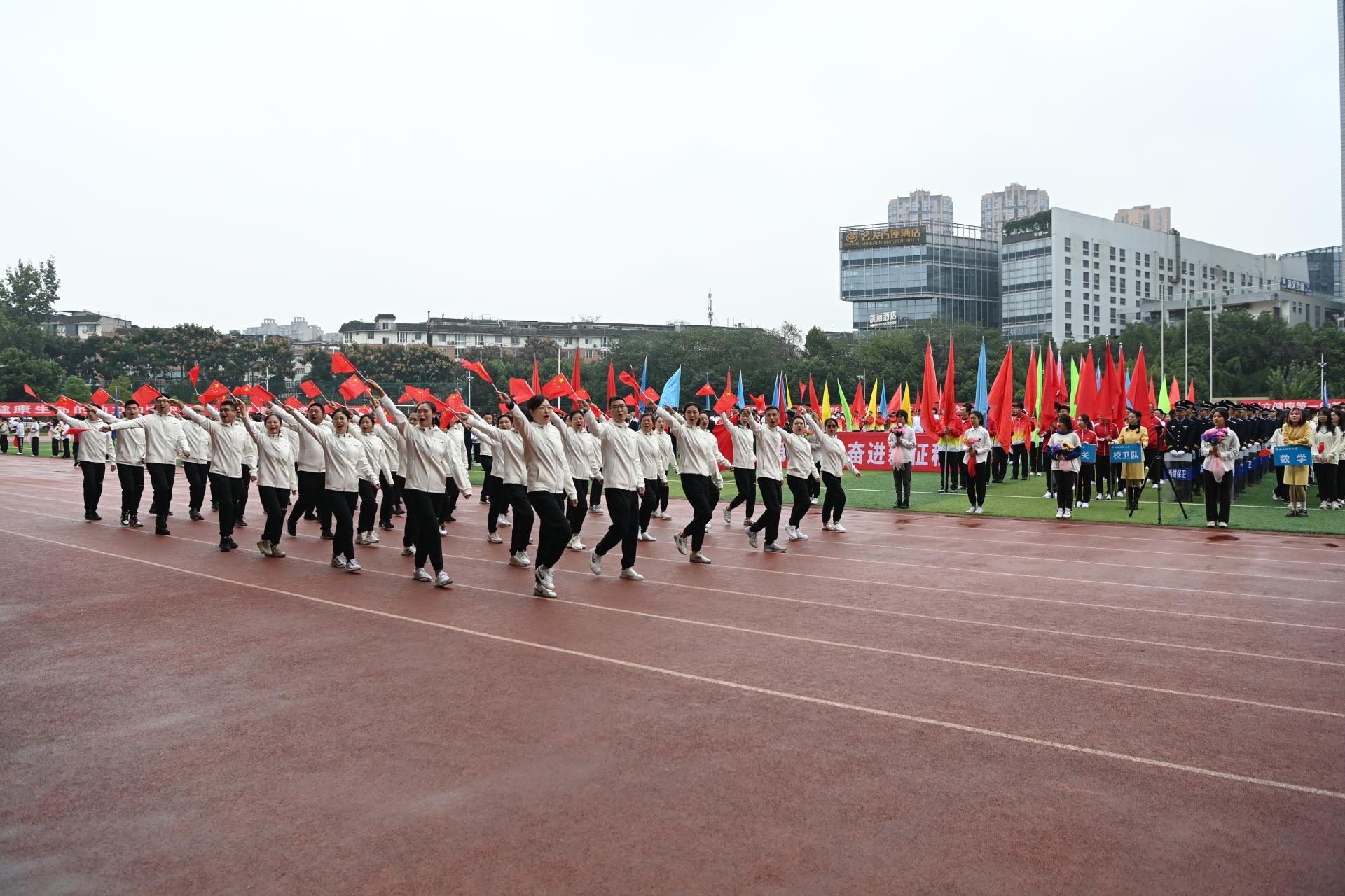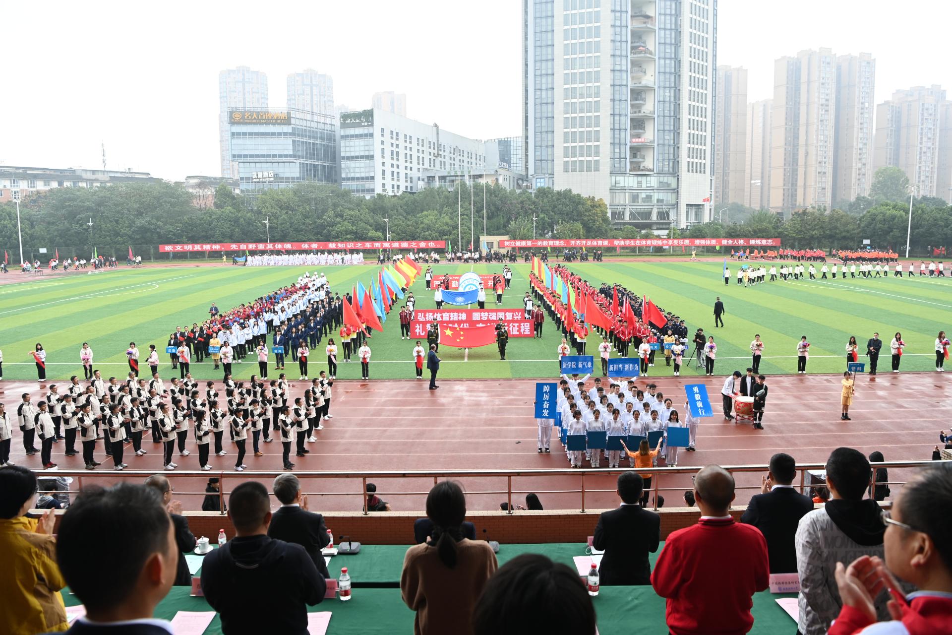 在全国上下深入学习宣传贯彻党的二十大精神之际,我校2022年秋季运动会积极响应习近平总书记在党的二十大报告中发出的“加快建设体育强国”总号召,以“礼赞新时代、奋进新征程,弘扬体育精神、圆梦强国复兴”为主题,于10月27-28日在柳林校区举行。学校党委书记赵德武,党委副书记、校长卓志,党委副书记马骁,党委副书记、副校长李永强,党委常委、副校长尹庆双、史代敏、张邦富、李志生,学院(研究院)和各职能部门负责人参加了开幕式。