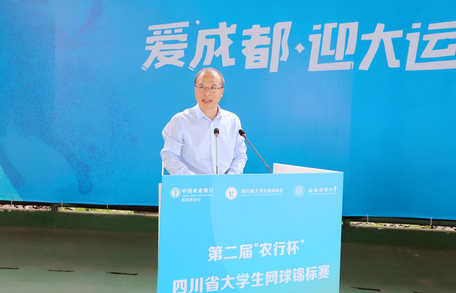赵德武宣布比赛开幕,李永强致开幕辞。李永强指出,我校高度重视体育工作,把体育作为提高体质健康水平的必然途径,作为落实立德树人根本任务的基础工程,作为培养财经领域卓越人才的重要抓手,树牢“健康第一”育人理念,坚持群众体育和竞技体育融合发展。此次大赛切实促进了高校间的交流互信、多方共赢,集中展现了我省高校网球事业的发展成果,同时有机融入成都市“世界赛事名城”品牌建设,更因成都大运会的即将隆重举办而具有特殊意义。