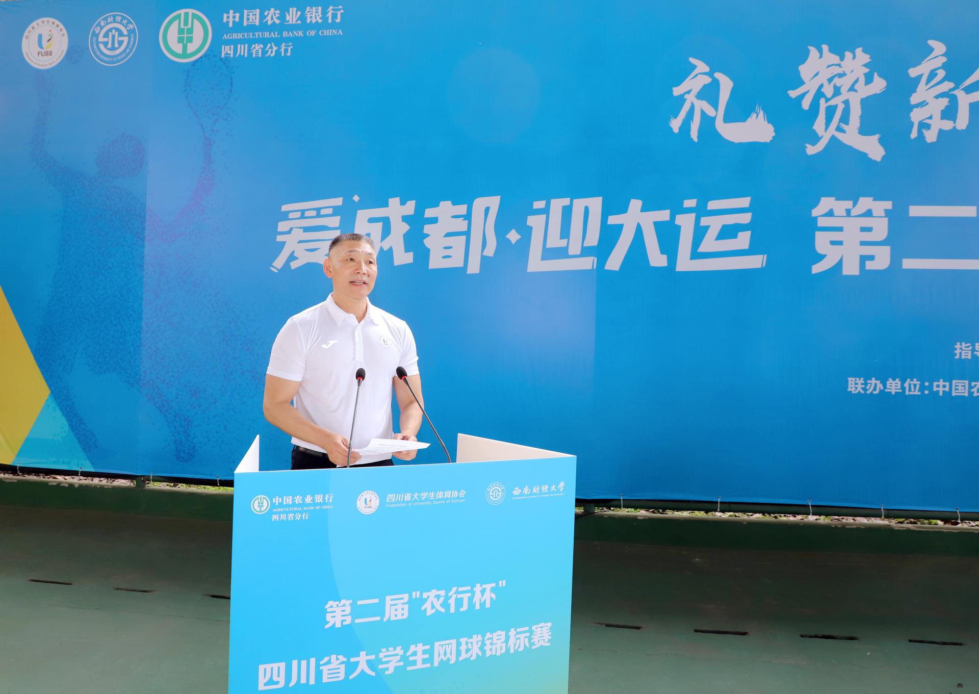 5月13日、14日,由四川省教育厅指导、四川省大学生体育协会主办、ylzz总站线路检测中心承办、中国农业银行四川省分行联办的第二届“农行杯”四川省大学生网球锦标赛在我校柳林校区举行,全省48支代表队和700余名运动员、教练员、裁判员参与了比赛。四川省高等院校网球协会主席赖廷谦教授,中国农业银行四川省分行党委书记、行长孙景伟,中国农业银行四川省分行党委委员、副行长兼成都分行党委书记、行长王屹,中国农业银行四川省分行高级专家兼成都分行党委委员、副行长朱波,四川省大学生网球协会副会长王定宣教授,成都市网球协会副主席贺杰,我校党委书记赵德武教授,党委副书记、副校长李永强教授出席开幕式。学校yl12311线路检测院长、四川省大学生体育协会会长杨远波主持开幕式。