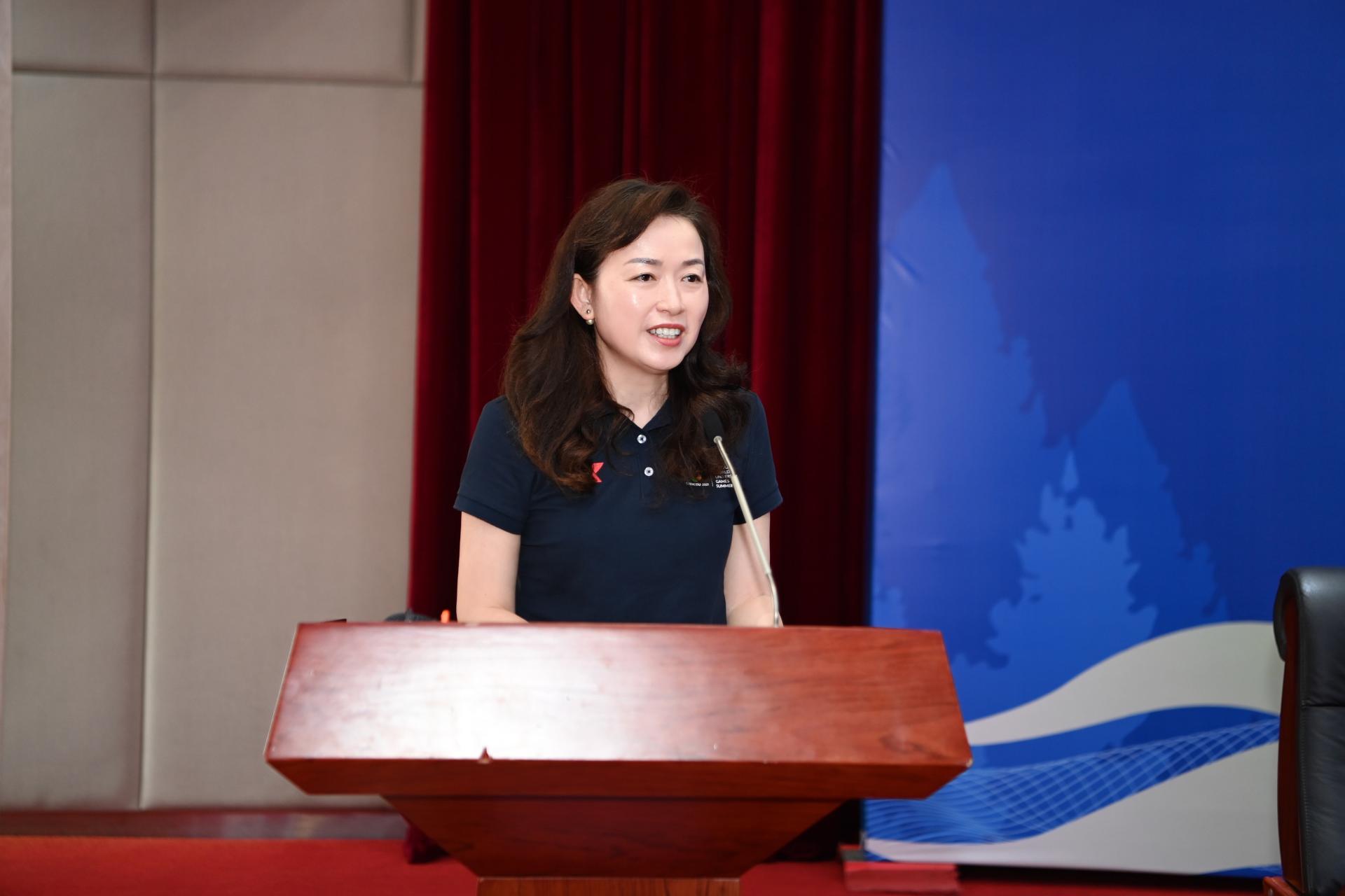 杨立国在会上致辞,他代表中国大学生体育协会向四川省大学生体育协会表示祝贺,通过回顾中国大学生体育协会走过的艰难历程,期望四川省大学生体育协会今后加强与中国大学生体育协会的联动,加强与兄弟省市(自治区)大学生体育协会的合作和交流。