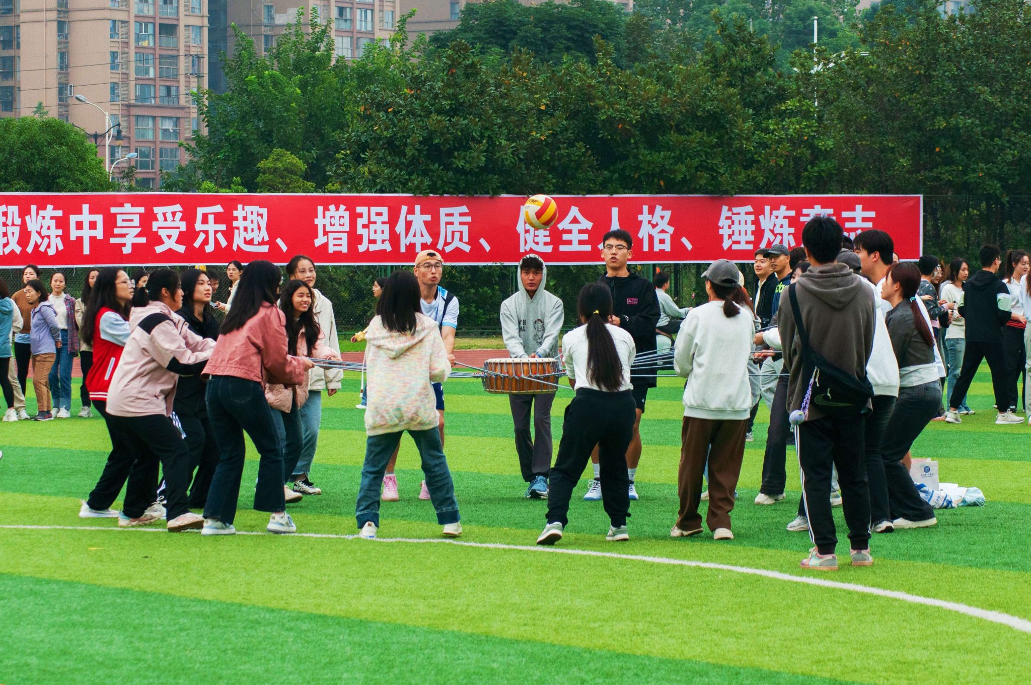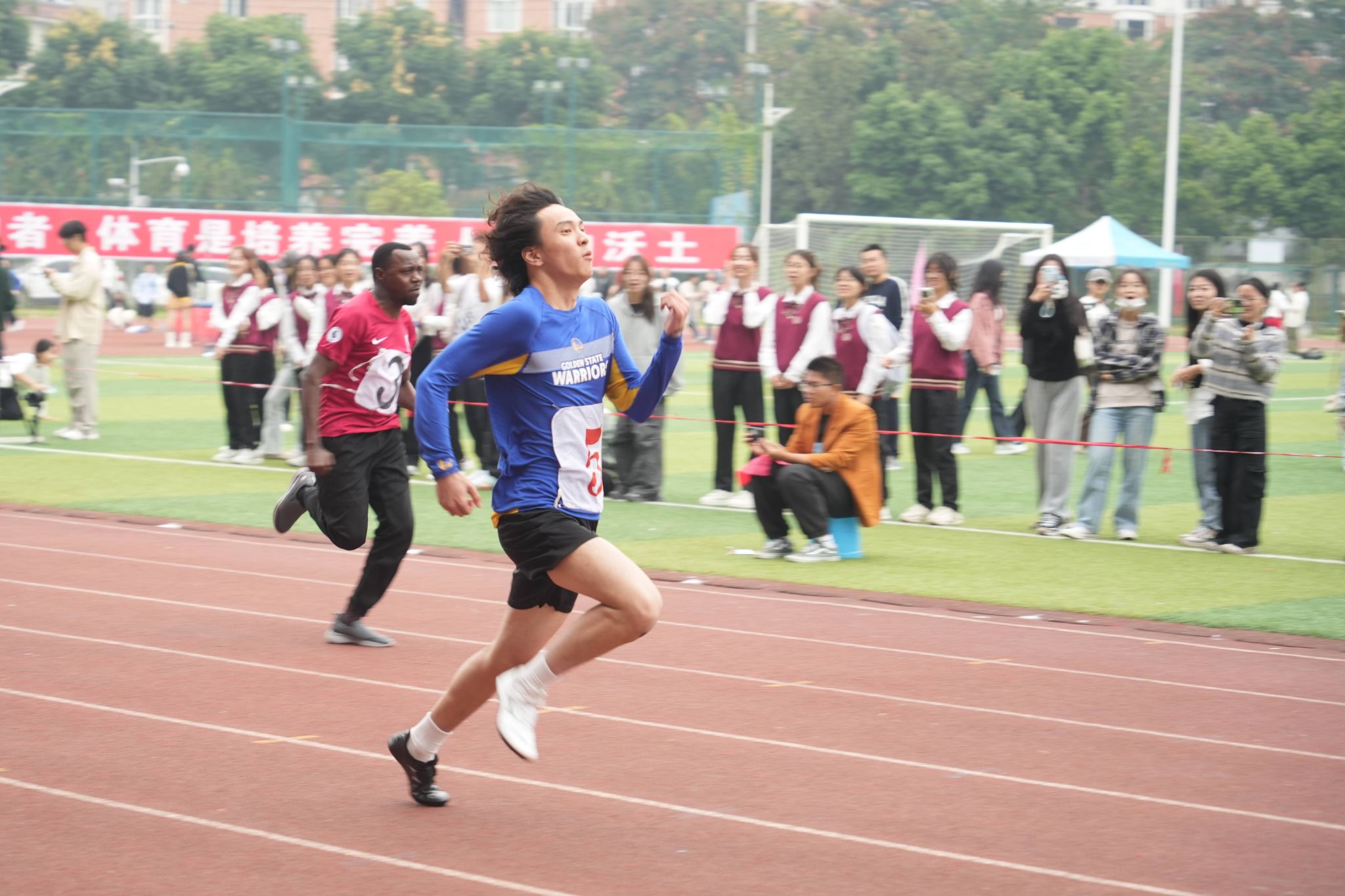 本届运动会设有田径、网球、乒乓球、羽毛球、台球、定向越野、彩虹跑、集体跳绳、拔河和仰卧起坐等40个竞赛项目,参赛⼈数超2万⼈次,体育嘉年华活动持续精彩上演。赛道上,运动健儿尽情挥洒汗水,顽强拼搏冲刺梦想。看台上,呐喊声此起彼伏,加油助威共赴荣耀。本届运动会更有校友代表队首次亮相,金秋欢聚、再展风采,畅享运动激情、共迎百年校庆。全体师生以饱满的热情、昂扬的姿态积极投身体育运动,奋勇拼搏、超越自我、享受⽐赛,共同绘就体育场上的靓丽风景线。