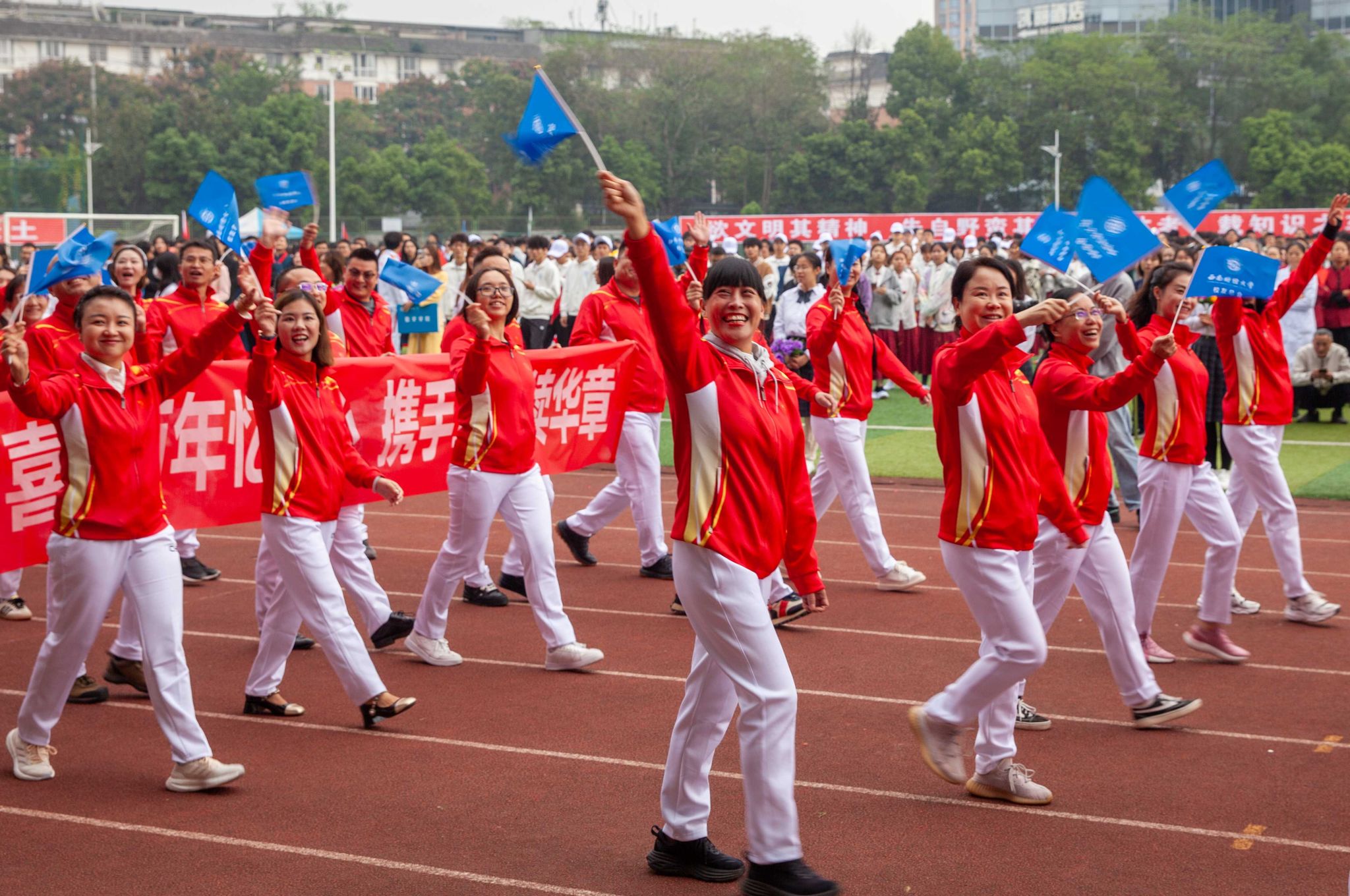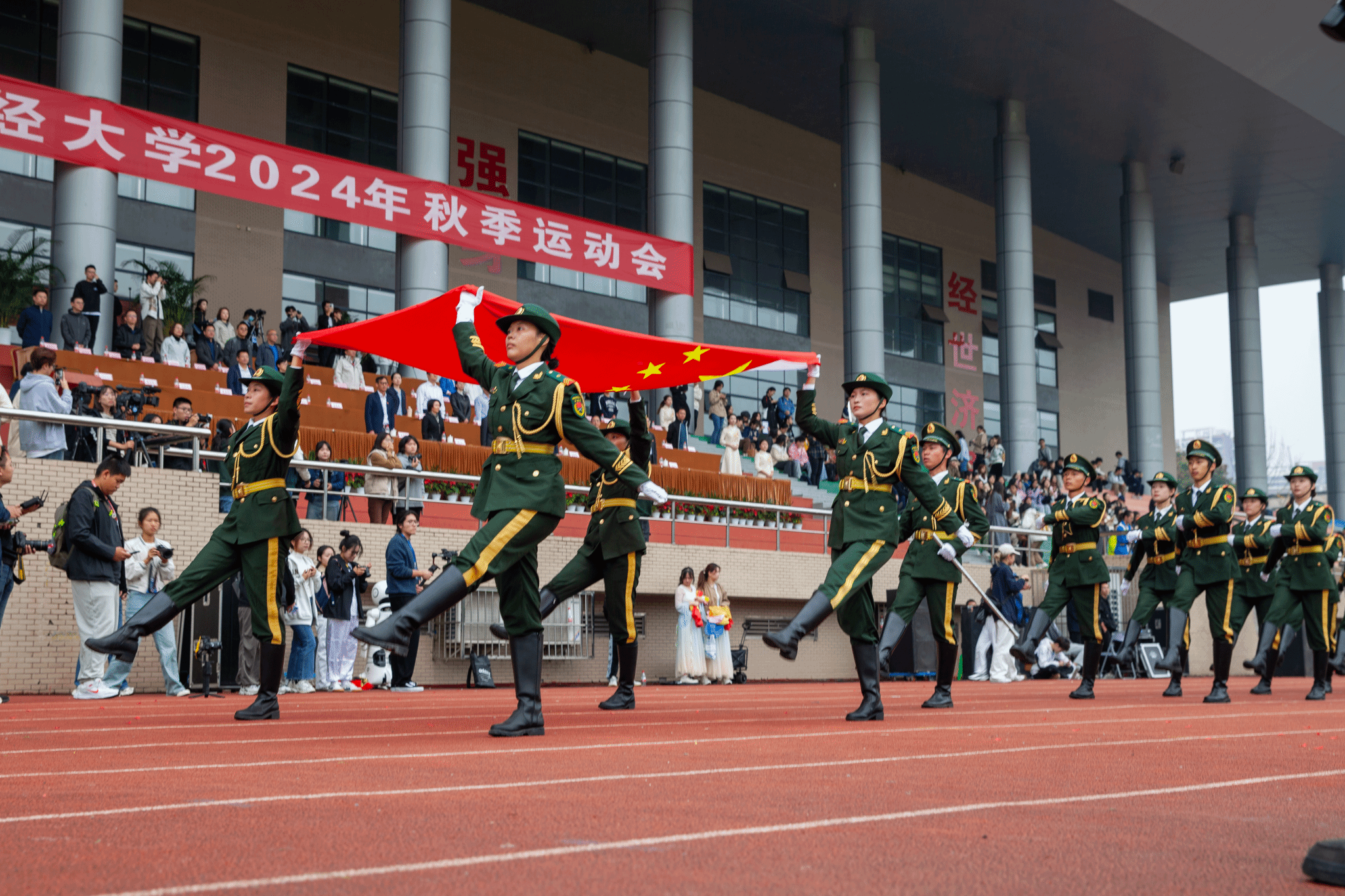 10月24日至25日,学校2024年秋季运动会在柳林校区举行。运动会以“礼赞新时代、奋进新征程,迎百年校庆、铸西财辉煌”为主题,学校党委书记赵建军,党委副书记、纪委书记孙殿明,党委副书记谢红,党委常委、副校长史代敏、桂富强、马永强,各职能部门和学院(研究院)负责人参加开幕式。