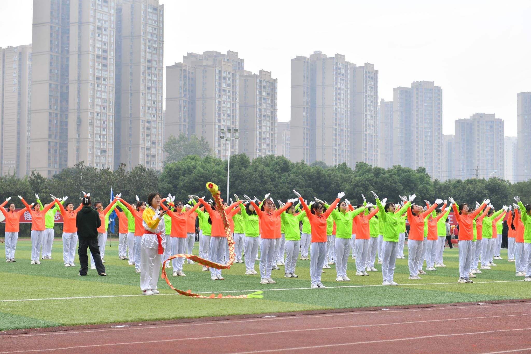 10月24日8时30分,运动会在晨曦运动场拉开帷幕。赵建军宣布运动会开幕。谢红主持开幕式。史代敏致开幕辞时指出,体育承载着国家强盛、民族振兴的梦想。新中国成立75年来,我国走出了一条独具特色的体育腾飞之路。学校高度重视体育工作和学生健康成长,始终秉承“健康体育、快乐体育、终身体育”理念,不断创新“1+3体育教学模式”,持续完善新时代体育教育新格局,竞技性体育项目屡获佳绩,学生体质健康水平稳步提升。