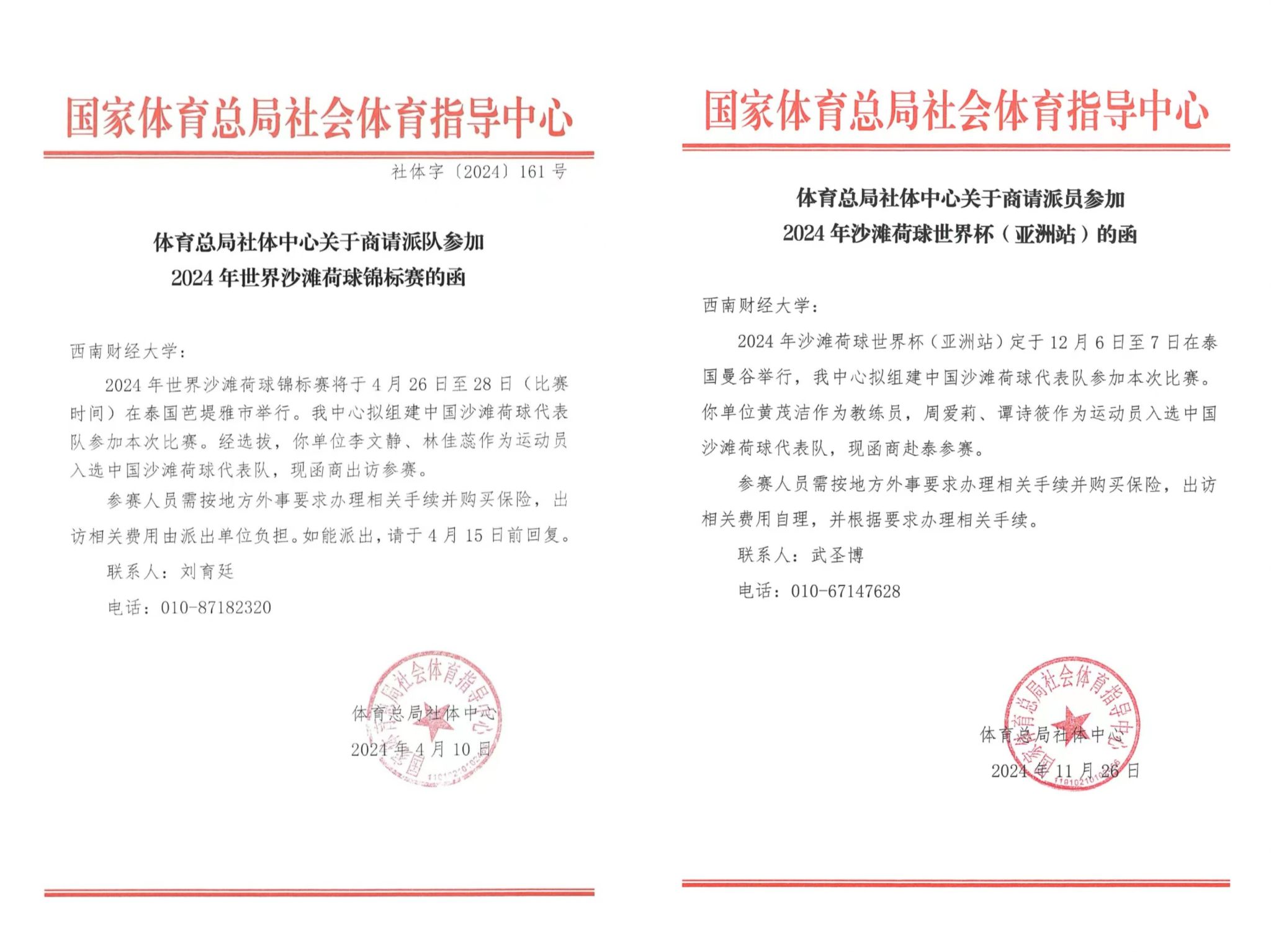 国家沙滩荷球集训队于2024年1月抽调我校高水平女篮队员李文静、林佳蕊备战2025年成都世界运动会资格赛。经过3个多月的集训,于4月28日在2024年世界沙滩荷球锦标赛(泰国芭提雅)暨2025年成都世界运动会沙滩荷球资格赛中,中国沙滩荷球队通过小组赛、排位赛的奋力拼搏,最终以9战6胜的成绩晋级2025年成都世界运动会沙滩荷球项目比赛正赛。