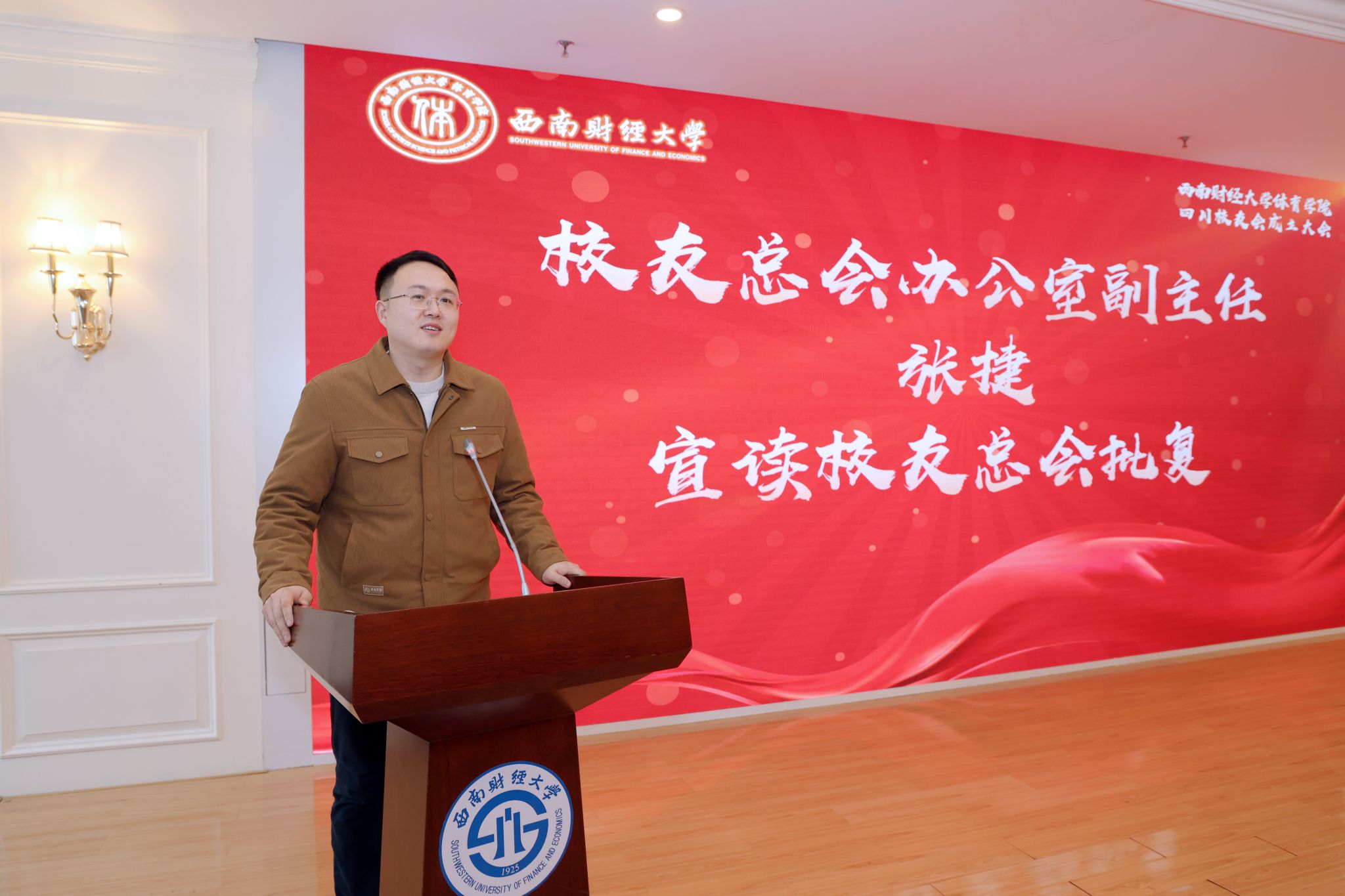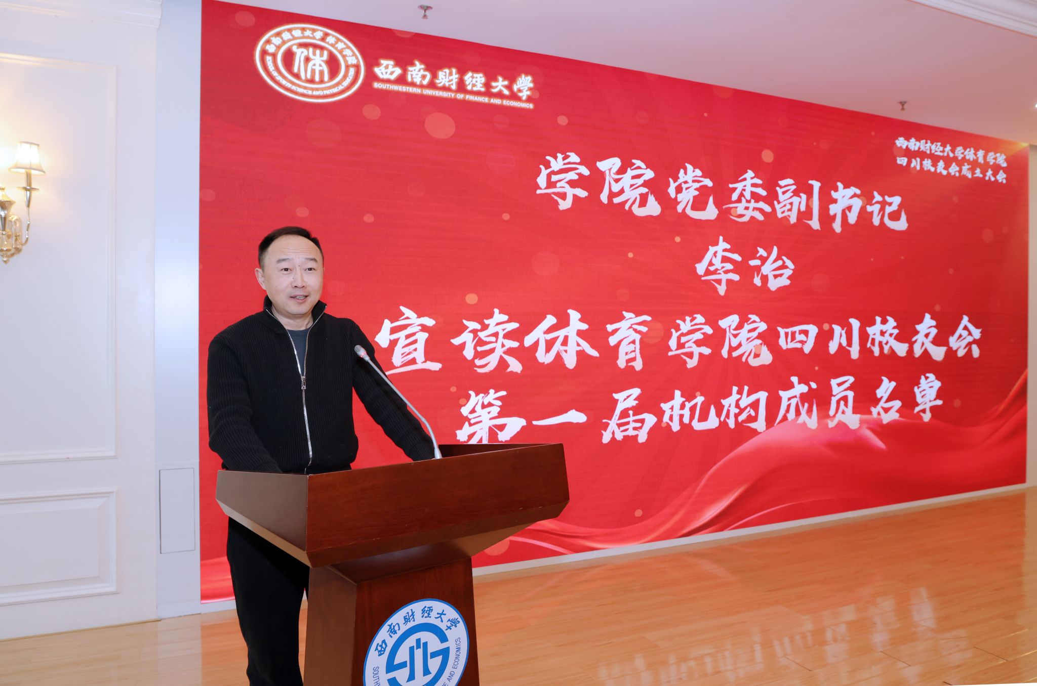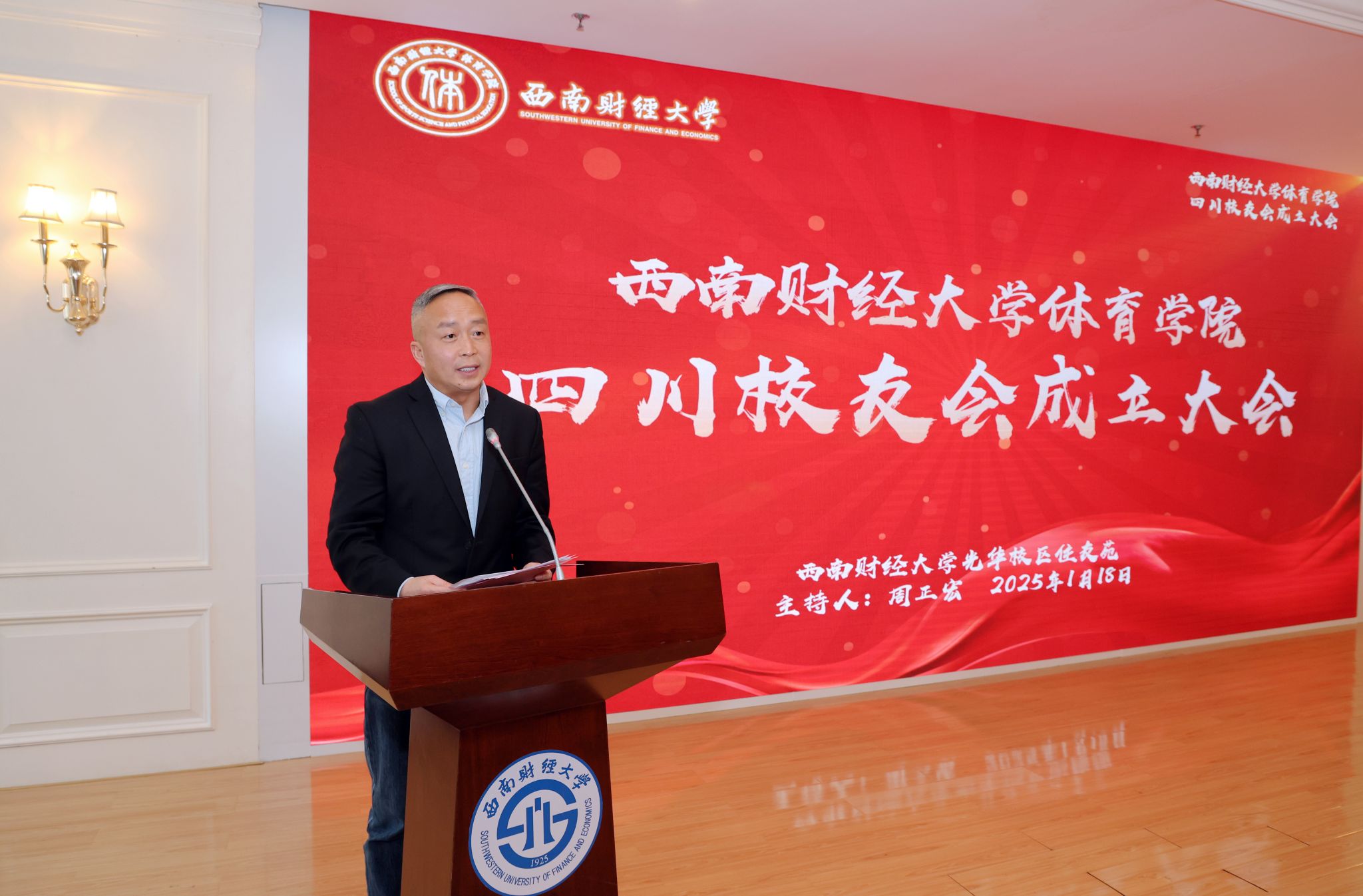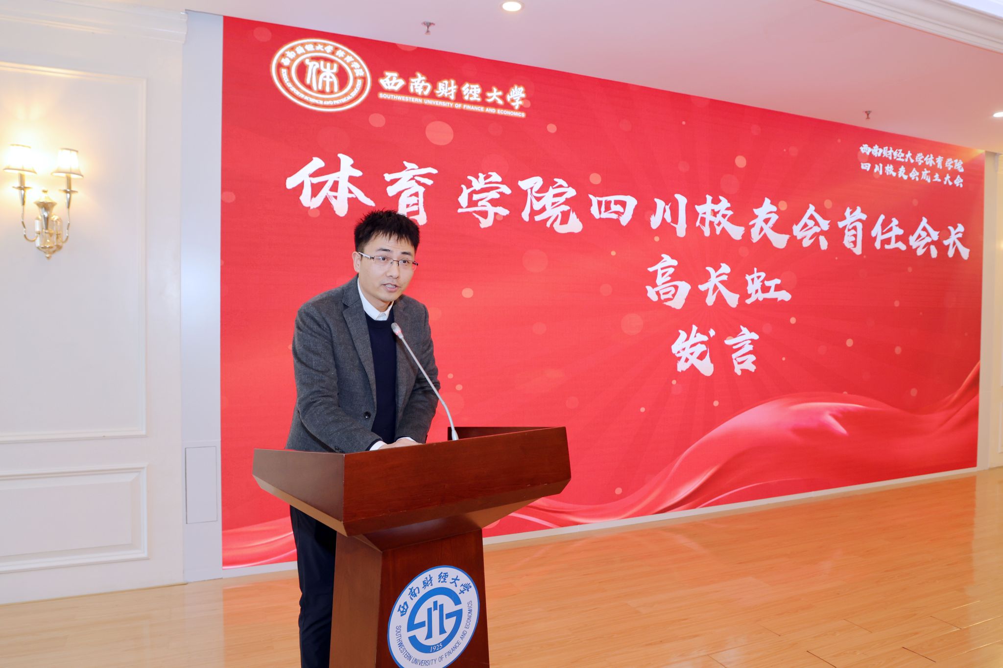 学院主持工作的副院长陈丛刊,代表学院向新成立的yl12311线路检测四川校友会表示衷心祝贺,向与会校友表示热烈欢迎。他深情回顾了学科发展历程,详细阐述了学院自成立至今的建设情况和未来发展愿景,以及学院四川校友会成立的重要意义。他强调,学院取得的成绩离不开全体师生员工的努力奋斗,更离不开广大校友的大力支持。校友是学校最宝贵的财富,与母校是荣辱与共的命运共同体,学院要着力构建校友与母校沟通联络的桥梁,搭建信息交流、资源共享的平台,与广大校友一道共叙母校深情、共谋学院发展,为加快建设教育强国贡献西财体育力量。