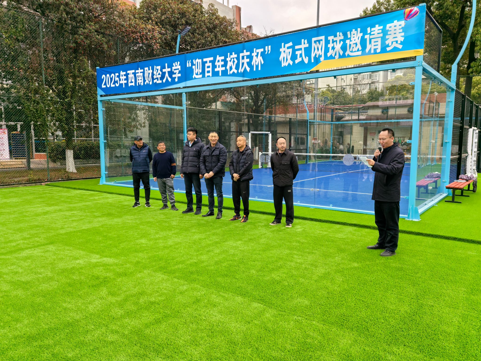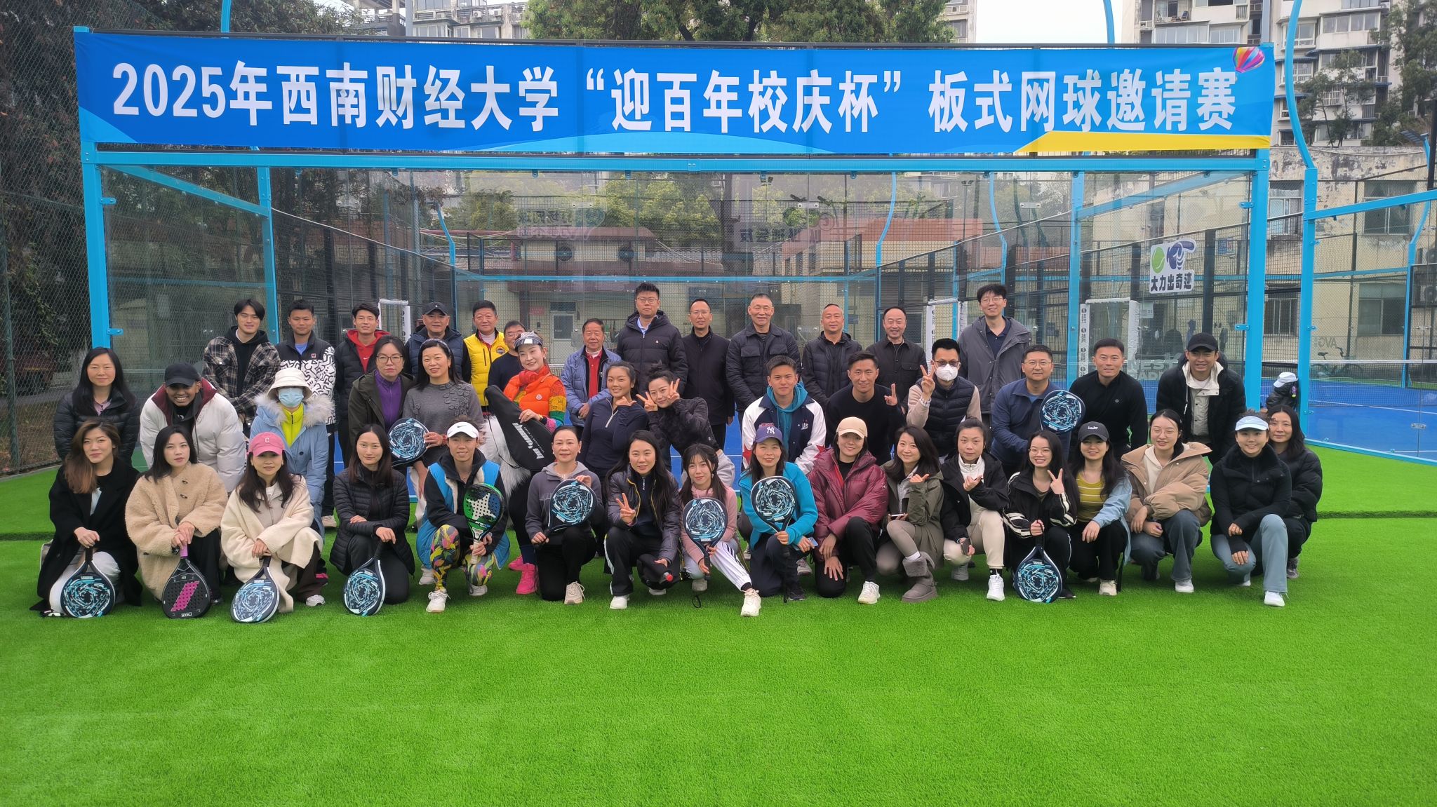 赛场上,为了让校友们尽情享受赛事,组委会特邀板式网球专业教练和运动员现场指导,从握拍技巧到战术配合,为初学者开启“快速入门通道”,让每位校友都能体验挥拍的乐趣。此外,组委会还准备了能量补给站,全天供应清凉饮品、精致茶点,校友们在场边畅享茶歇、为高手喝彩,在热烈互动中拉近彼此距离。赛场内外洋溢着欢声笑语,充分体现出运动带给每一个人的快乐。邀请赛不仅是竞技的舞台,更是校友与母校之间的情感纽带。以运动凝聚校友情谊,以拼搏传承西财精神,共同迎接学校百年华诞。