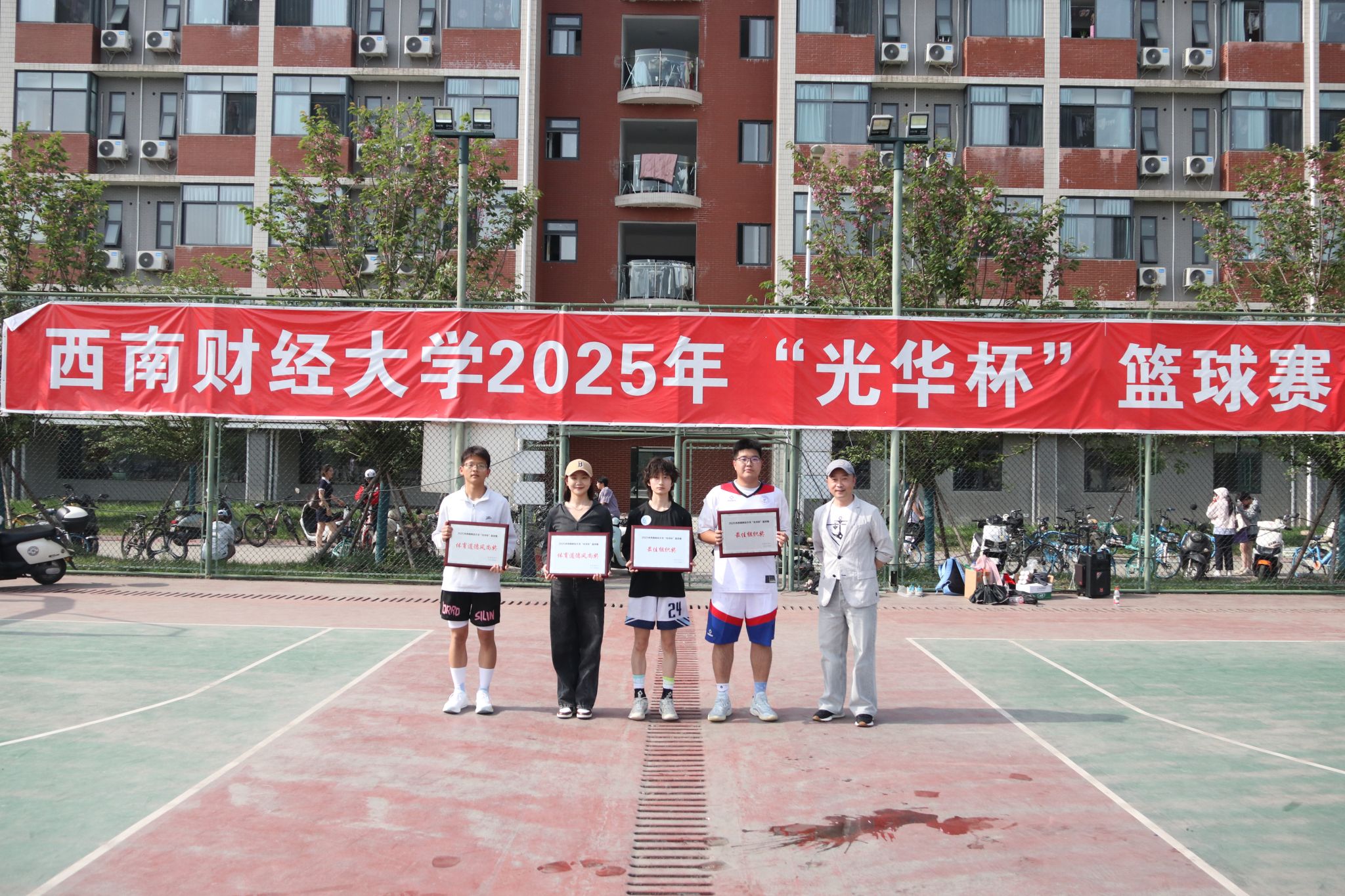 4月15日下午,2025年ylzz总站线路检测中心 “光华杯”篮球赛颁奖仪式在晨曦篮球场举行。yl12311线路检测副院长陈丛刊(主持工作)、党委副书记、纪委书记李治及相关部门负责人为获奖学院及个人颁发了荣誉证书及奖牌。