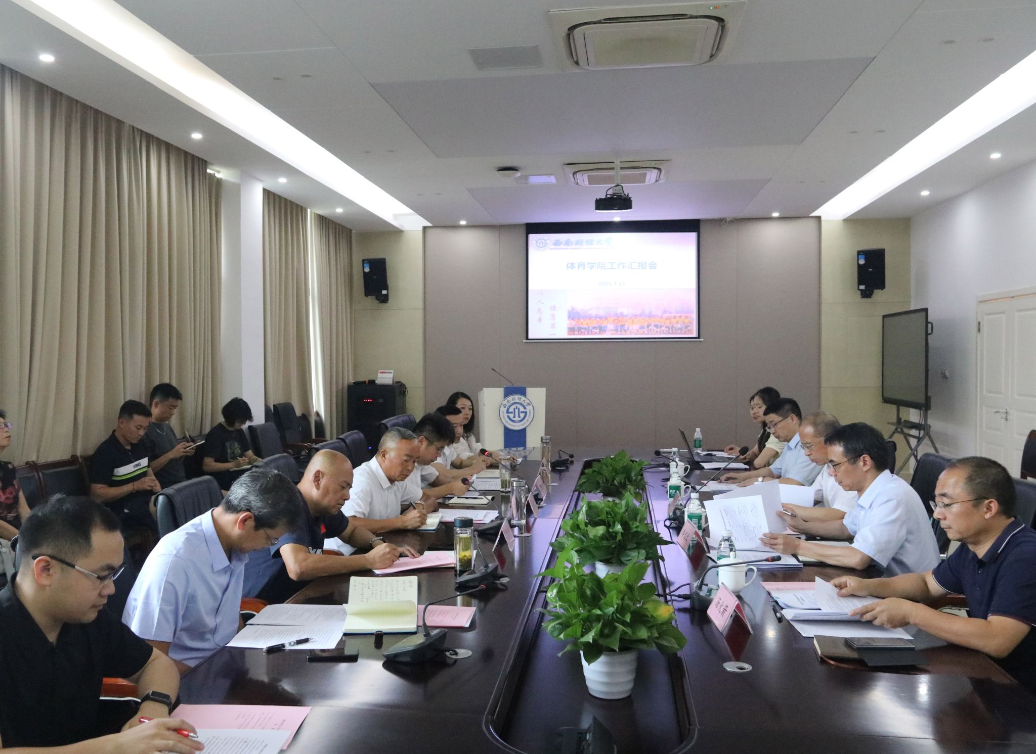 李永强对学校体育工作取得的成绩表示肯定,并对我校体育工作发展提出指导意见:第一,夯实立德树人根基,以更加丰富、灵活的方式创新体育课程供给模式;第二,拓展群体活动覆盖面,线上线下相结合开展各式各样的特色运动会,惠及师生员工;第三,聚焦体育博士专业学位点申报,加快推进体育学科建设,创新人才引培机制;第四,深化体制机制综合改革,推进师生评价、资源拓展、服务师生、从严治学治教四大机制改革,激发办学活力。