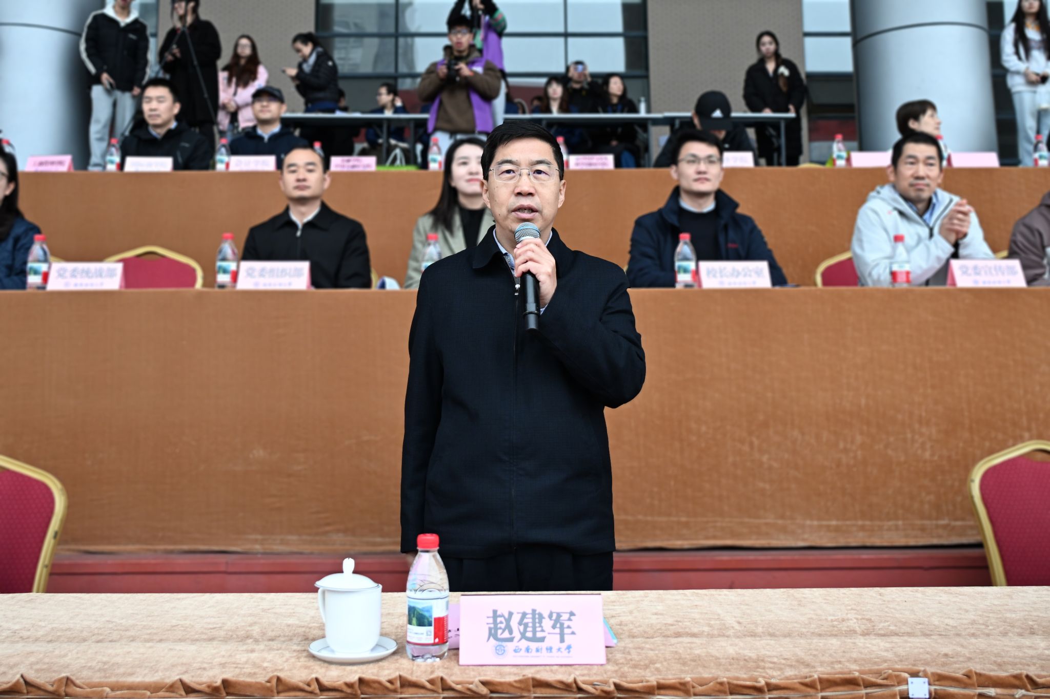11月6日—11月7日,学校2025年秋季运动会在柳林校区举行。运动会以“礼赞新时代·奋进新征程,庆百年校庆·铸西财辉煌”为主题,党委书记赵建军,党委副书记、校长李永强等全体校领导,各职能部门和学院(研究院)负责人参加开幕式。