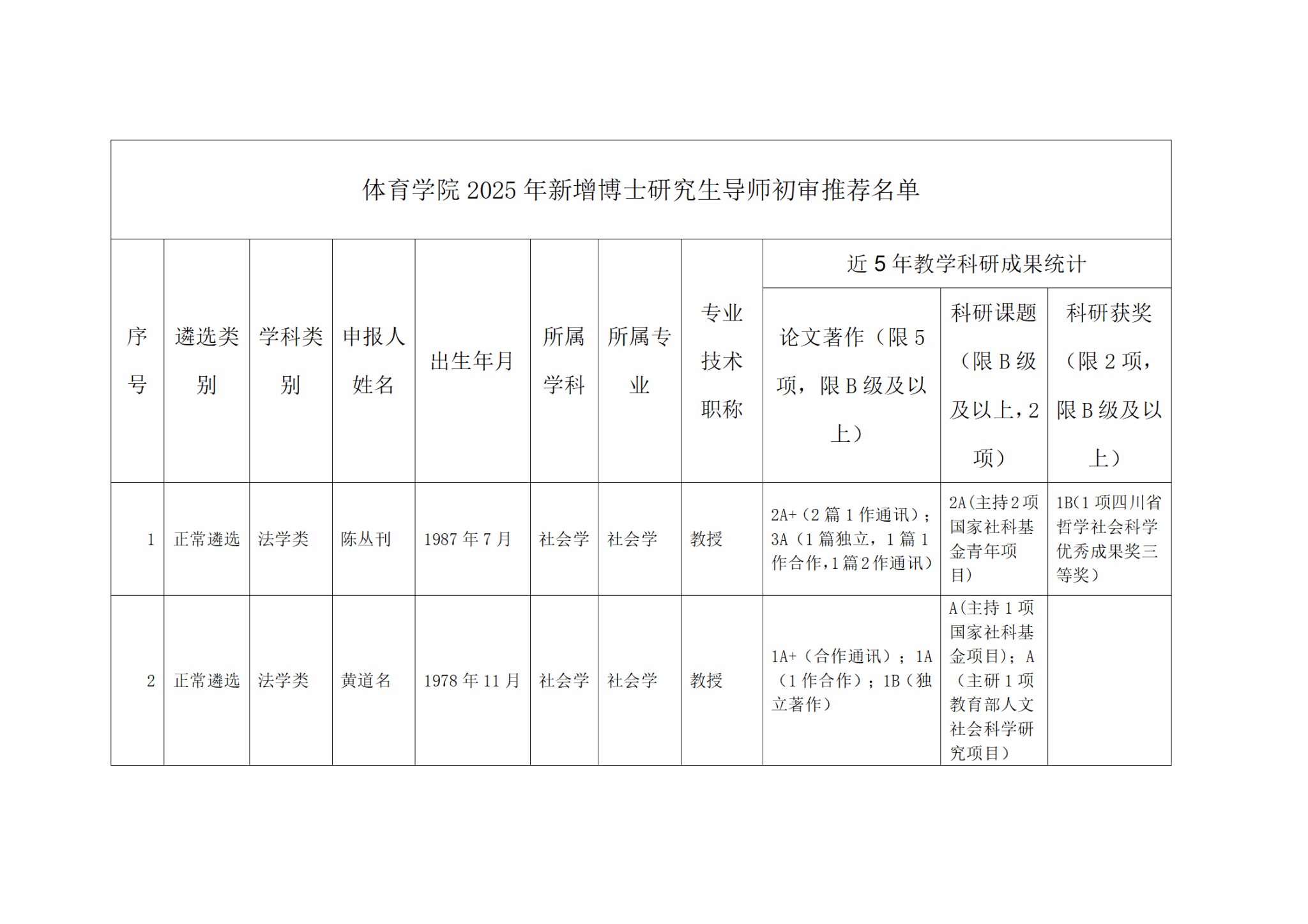 根据《ylzz总站线路检测中心研究生导师岗位管理办法(试行)》(西财大办〔2023〕19号)、《关于2025年新增博士生指导教师遴选工作的通知》要求,经教师本人申请,学院工作人员初审,党政联席会议审查,体育学院学位评定分委会审核,现将本单位初审推荐的2025年新增博士研究生导师名单公示如下(见附件),公示期为2025年10月27日至2025年11月2日。如对公示结果有异议,可在公示期内反馈,联系人:熊老师,联系邮箱:xionglj@swufe.edu.com。