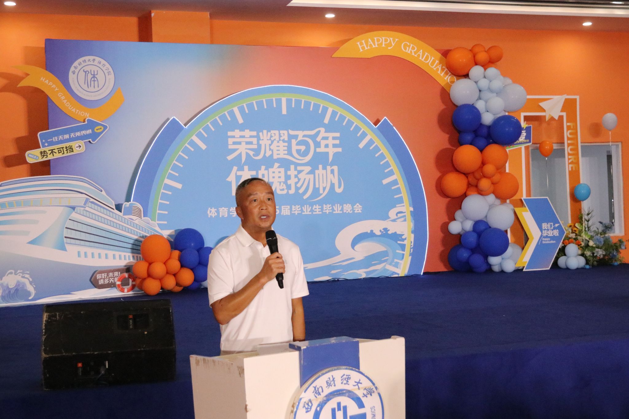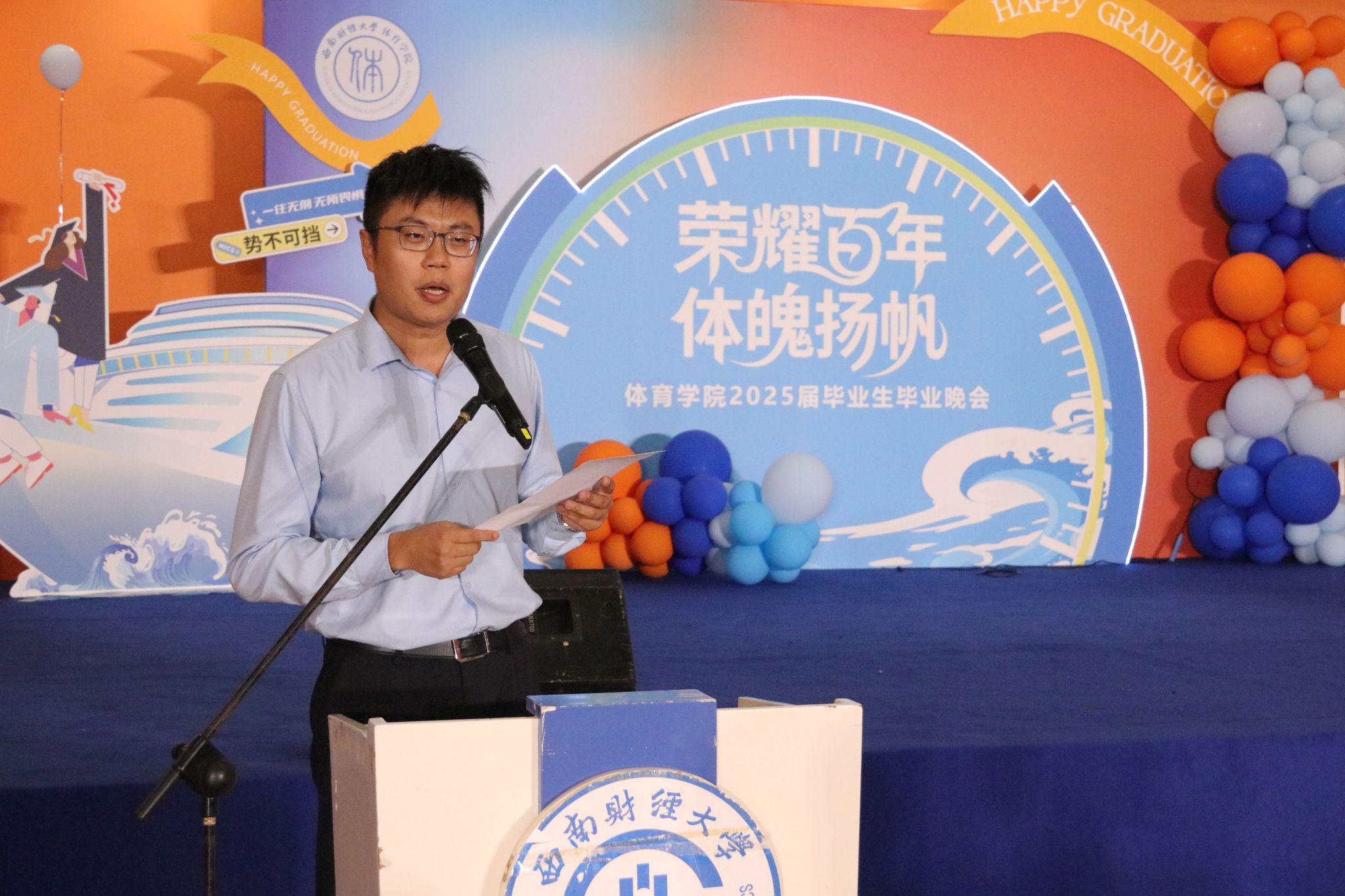 毕业生代表钟文艺发言,聚散终有时,未来诚可期,今天即将从西财启航,奔赴人生的下一段征程。无论我们未来身在何方,从事何种职业,请让我们始终铭记:西财体育赋予我们的宝贵精神财富——坚韧、拼搏、协作、追求卓越,让它成为我们克服困难、实现梦想的不竭动力。感恩学院对我们的精心栽培,感谢各位老师们的辛勤付出。